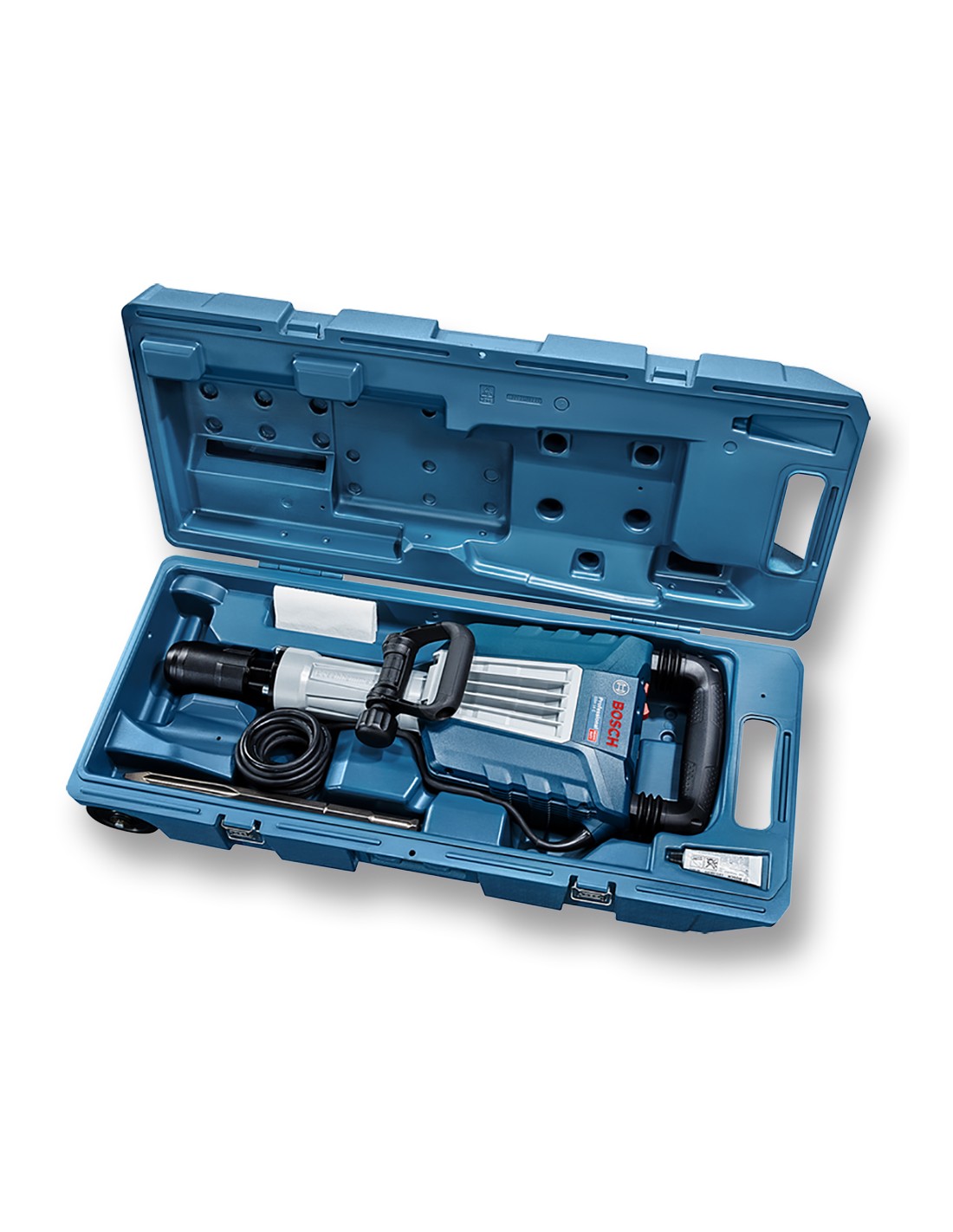 Martillo demoledor GSH 14 C, El GSH 14 C Professional proporciona excelentes resultados en demolición y alto nivel de arranque de material gracias a su energía de impacto de 28 J y a su velocidad de impacto de 1900 ipm. El reducido peso de este martillo demoledor, basado en el sistema portaherramientas HEX de 22 mm, garantiza la ejecución del trabajo con menos esfuerzo. El martillo demoledor es muy duradero gracias a su robusto diseño con motor Brushless sin escobillas y su tecnología patentada de giro automático de engranajes para mayor vida útil del engranaje. Este martillo demoledor fuerte y robusto ofrece gran fuerza de percusión y velocidad de impacto para romper hormigón, corregir vigas de hormigón armado, y demoler suelos de hormigón y superficies asfaltadas. El GSH 14 C Professional es adecuado para cemento, hormigón armado y mortero. Es compatible con el aspirador de polvo GDE HEX Professional y el sistema de cinceles HEX 22 mm. 1 cincel puntiagudo, vástago hexagonal de 22 mm, 400 mm (2 608 690 188); Tubo de grasa (número de pieza de recambio 1 615 430 010); Paño de limpieza (1 619 P15 281); Empuñadura adicional (1 619 P17 704); Maletín de transporte (6 035 970 999)